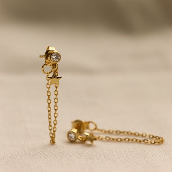Dit zijn onze Chain Zirconia Star LOLA Oorstekers. De oorbellen zijn verkrijgbaar in 925 sterling zilver of met een 14K gouden plating. Alle oorbellen worden per paar verkocht.