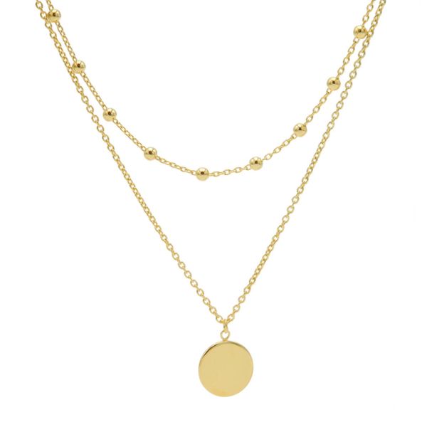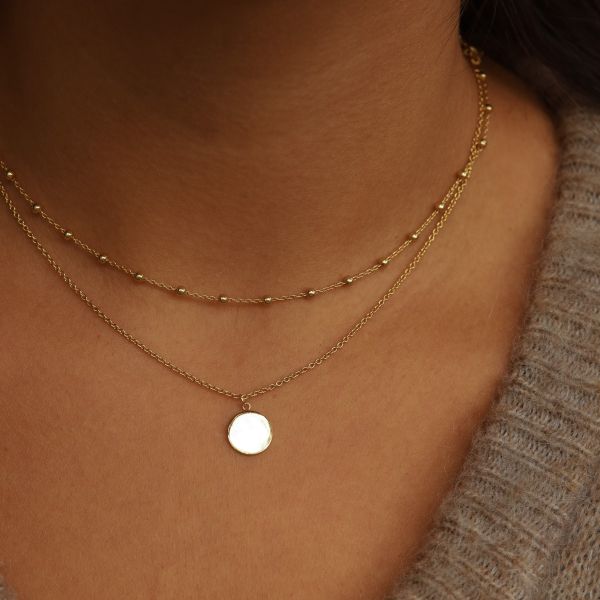 Dit is onze Double Necklace Dots Disc. De ketting is 38CM lang en kun je verlengen tot 45CM. Onze sieraden zijn verkrijgbaar in 925 sterling zilver of met een 14K gouden plating.