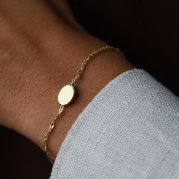 Wat deze armband nog bijzonderder maakt, is de mogelijkheid om hem te personaliseren. Kies je favoriete lettertype en vul in het vrije tekstveld precies in wat je gegraveerd wilt hebben of het nu initialen, een naam, een datum of een betekenisvol woord is. Zo creëer je een uniek sieraad dat jouw verhaal vertelt.