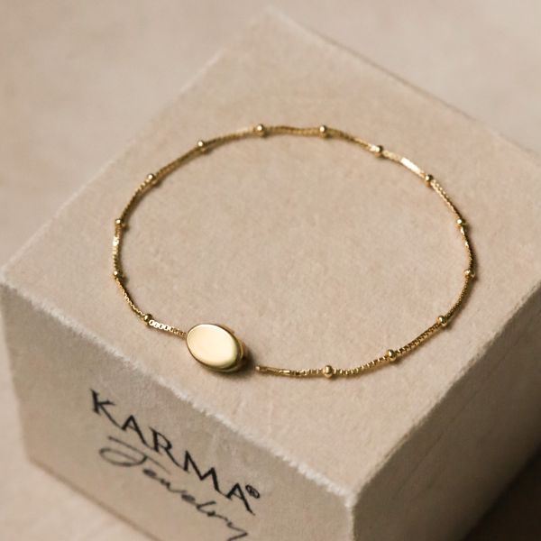 Wat deze armband nog bijzonderder maakt, is de mogelijkheid om hem te personaliseren. Kies je favoriete lettertype en vul in het vrije tekstveld precies in wat je gegraveerd wilt hebben of het nu initialen, een naam, een datum of een betekenisvol woord is. Zo creëer je een uniek sieraad dat jouw verhaal vertelt.