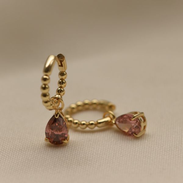 Dit zijn onze Hinged Hoops ANNA Wine Red. De oorbellen zijn verkrijgbaar in 925 sterling zilver of met een 14K gouden plating. Alle oorbellen worden per paar verkocht.