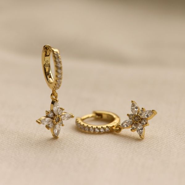 Dit zijn onze Hinged Hoops Zirconia Morningstar BIJOU. De oorbellen zijn verkrijgbaar in 925 sterling zilver of met een 14K gouden plating. Alle oorbellen worden per paar verkocht.