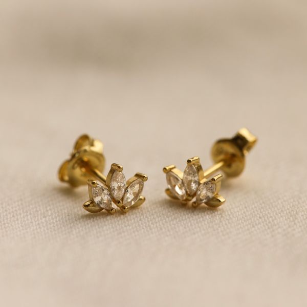 Dit zijn onze Karma Zirconia Triple Flower Jeans Blue Earstuds. De oorbellen zijn verkrijgbaar in 925 sterling zilver of met een 14K gouden plating. Alle oorbellen worden per paar verkocht.