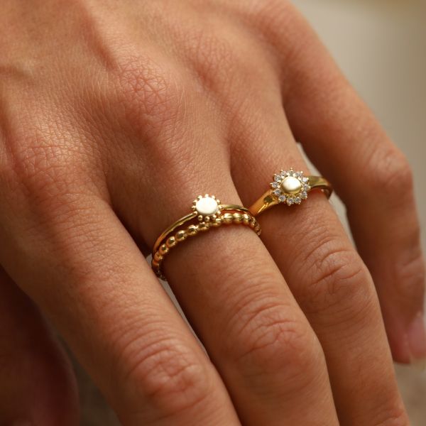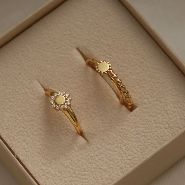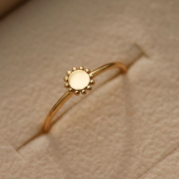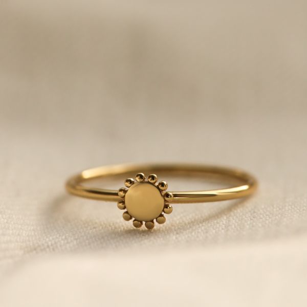 Dit is onze dotty disc ring. Onze sieraden zijn verkrijgbaar in 925 sterling zilver of met een 14K gouden of rosegouden plating.