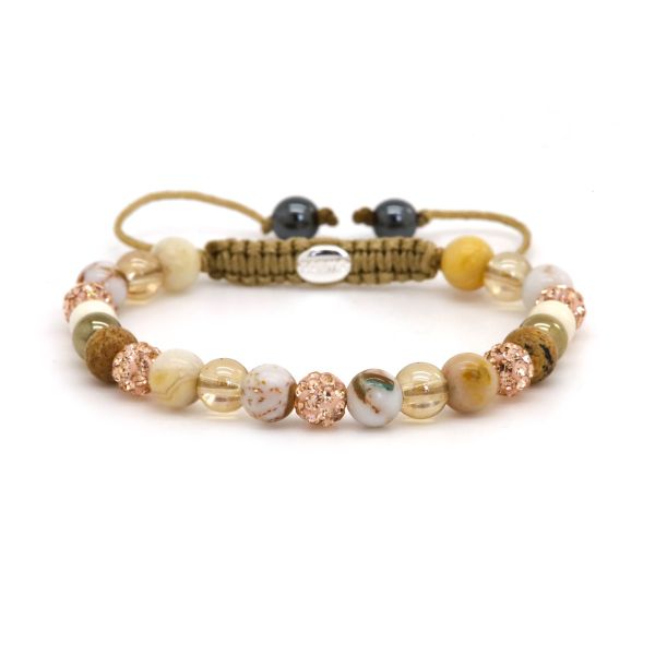 Onze armbandjes zijn gemaakt van echte natuurstenen met kristal kralen. Om de sieraden zo lang mogelijk mooi en glanzend te houden adviseren wij voorzichtig te zijn met water, parfum en andere chemicaliën.