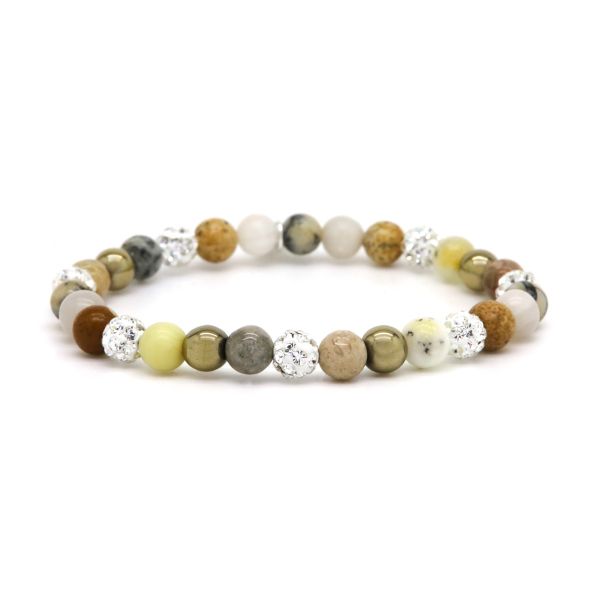 Onze armbandjes zijn gemaakt van echte natuurstenen met kristal kralen. Om de sieraden zo lang mogelijk mooi en glanzend te houden adviseren wij voorzichtig te zijn met water, parfum en andere chemicaliën.